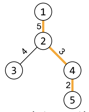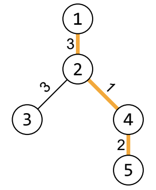 Kitten Kis has found a big tree in his yard. He wants to climb it, but the tree is too big! The tree he has found has NN nodes and NN- edges. Each edge has a positive length. We define the distance between any two nodes as the sum of the lengths of the edges on a simple path between them. Additionally, we define the diameter of a tree as the biggest distance between any two nodes.