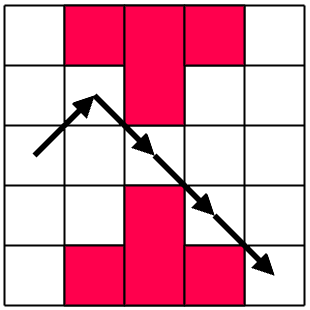 Aria de joc are forma unei matrice cu linii și coloane, unde este un număr impar. Liniile matricei sunt numerotate de jos în sus de la la , iar coloanele matricei sunt numerotate de la stânga la dreapta de la la . Caracterul pe care jucătorul îl controlează se află la început pe prima coloană, linia din mijloc, și se deplasează spre ultima coloană. În fiecare secundă, acesta se deplasează fie pe direcția dreapta-sus, fie pe direcția dreapta-jos.