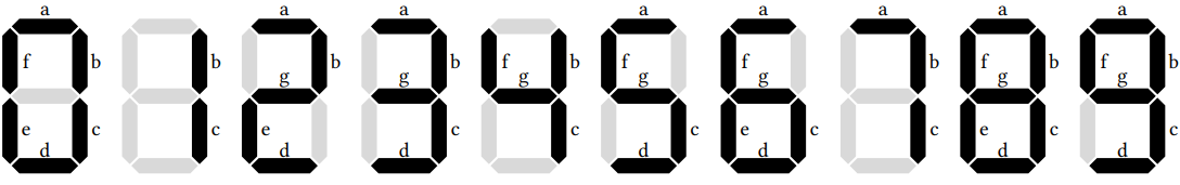 Un indicator numeric este un dispozitiv de afişaj electronic destinat afişării unei cifre zecimale. Acesta conține 77 segmente notate cu a, b, c, d, e, f, g. Afişarea unei cifre se face prin aprinderea segmentelor evidențiate din figura de mai jos, corespunzătoare fiecărei cifre: