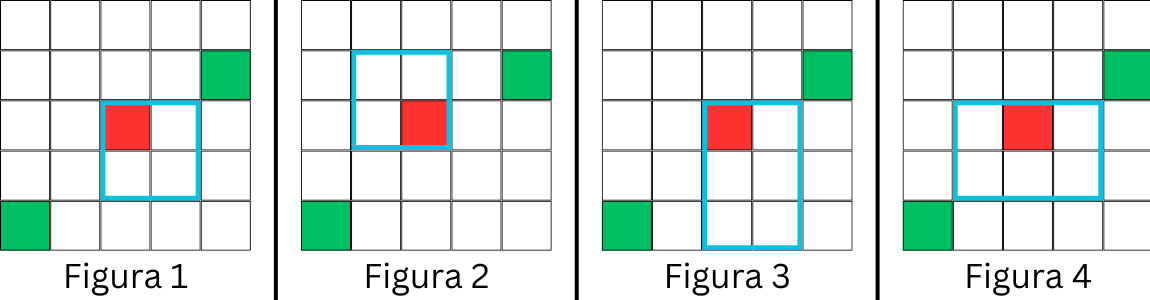 • În figura 2, casa (2,2)(2, 2) (3,3)(3, 3) nu este construită corect, deoarece copacul (2,5)(2, 5) blochează vederea spre marginea dreaptă a tablei.