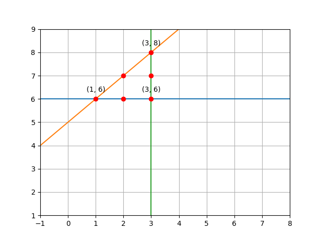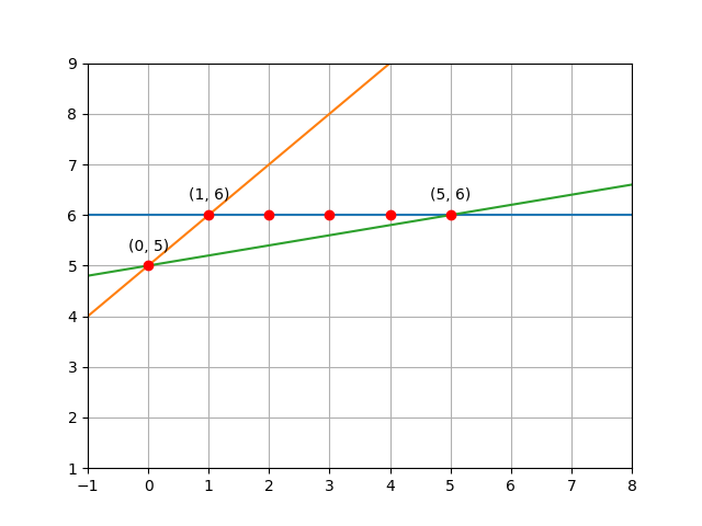 - It is guaranteed that the given lines intersect at a single point and that this point is a lattice point with coordinates between and .
