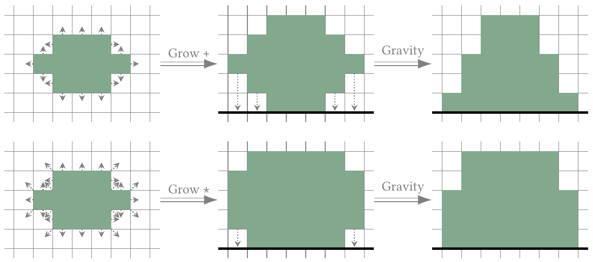As an example, the effects of each of the 2 types of grow phases, followed by a gravity phase, are pictured below.