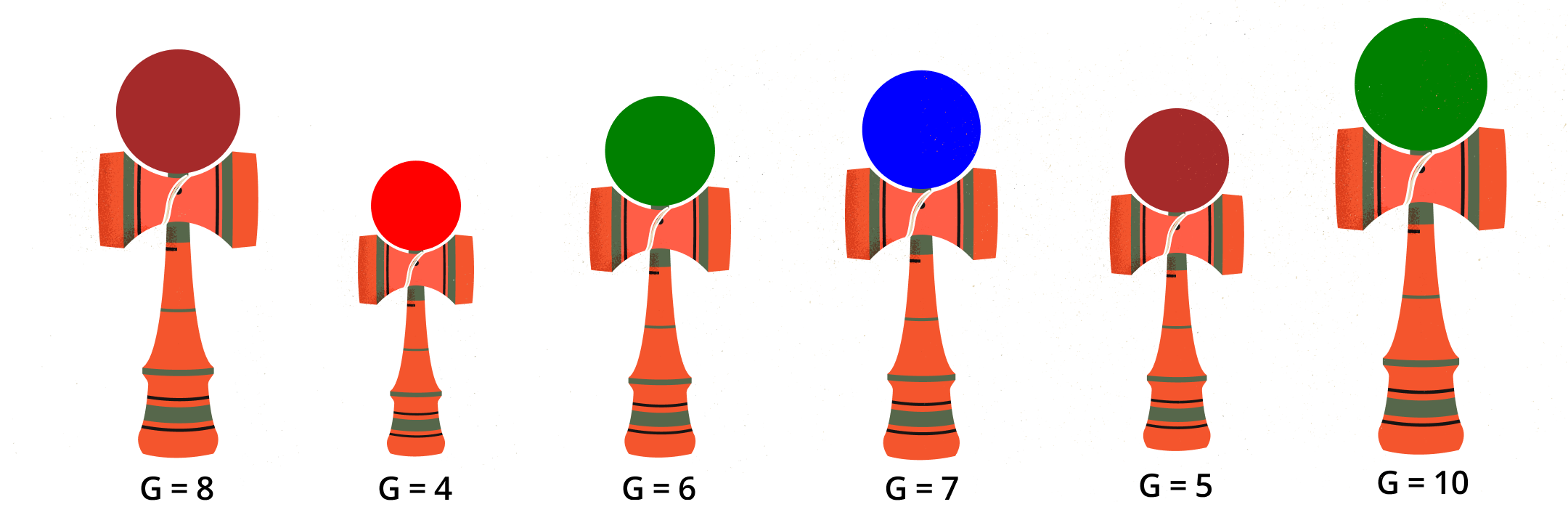 Andrei este pasionat de kendama și a strâns de-a lungul timpului o colecție impresionantă de kendame. Fiecare kendama are o anumită greutate, exprimată printr-un număr natural. De exemplu, colecția de mai jos are 6 kendame, cu greutățile .