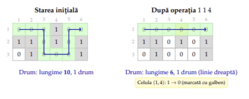 Prima operație ne întreabă care este lungimea minimă a unui drum care pornește de pe prima coloană și se termină pe ultima. Acest drum unic este format din celulele .
