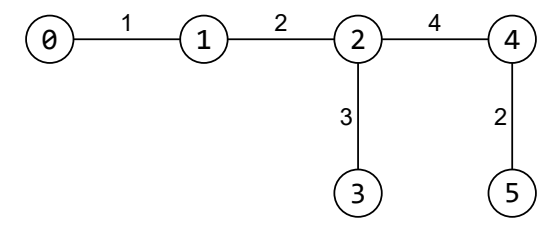 There are Happy restaurants in Varna, numbered from to . They are connected by two-way paths, where each path has a happy energy value. Given two restaurants and , we define a simple route between them as a sequence of paths starting from and ending in without repeating restaurants. The restaurants are connected in such a way so that there is exactly one simple route between each pair of restaurants.