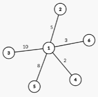 Each of the next lines of stdin contains three space-separated integers, , and , representing a weighted edge connecting nodes and with weight .
